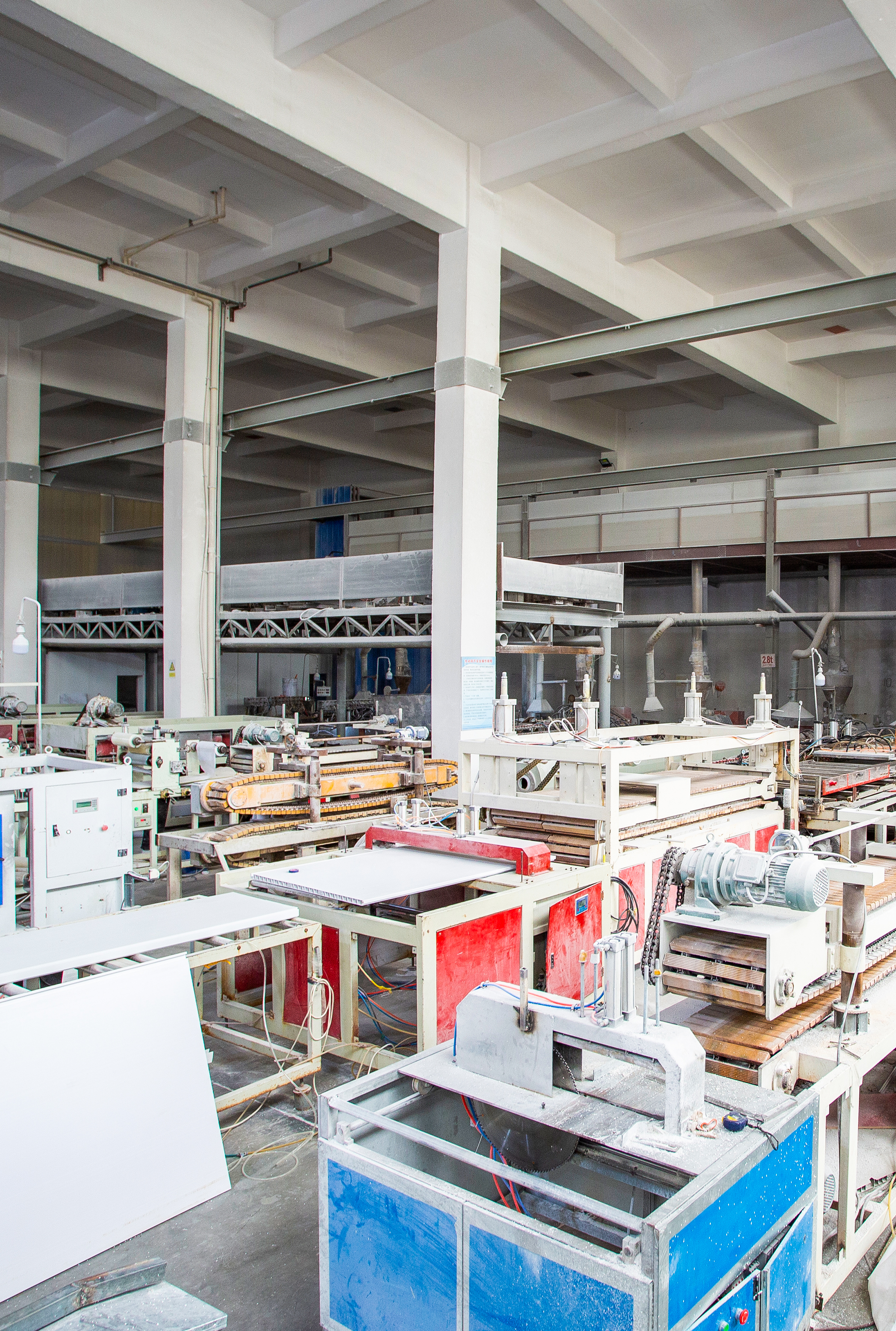 Die Fabrik erstreckt sich über eine Fläche von 6.000 Quadratmetern und ist mit 32 vollautomatischen Extrusionslinien ausgestattet (darunter 10 Extruder mit 65 Stück, 2 Extruder mit 80 Stück und 20 Extruder mit 51 Stück). (einschließlich 10 65 Extruder, 2 80 Extruder und 20 51 Extruder), die die effiziente kontinuierliche Produktion von PVC, WPC und anderen Materialien erfüllen können. Durch die Kombination mehrerer Modelle wird ein integrierter Betrieb vom Mischen, Extrudieren, Kühlen und Formen bis zum Schneiden realisiert.